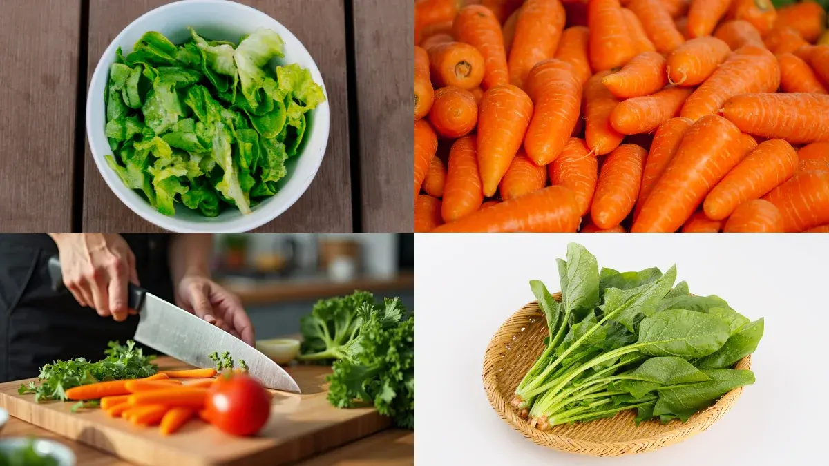 - แครอทผักสีส้มที่อัดแน่นไปด้วยวิตามินหลากหลายชนิด ทั้งวิตามิน A, B1, B2, C, D และ K อีกทั้งยังมีกรดโฟลิก ฟอสฟอรัส โซเดียม โพแทสเซียม ธาตุเหล็ก สังกะสี และทองแดง ช่วยบำรุงตับ บำรุงเลือด และช่วยแก้อาการอาหารไม่ย่อยได้