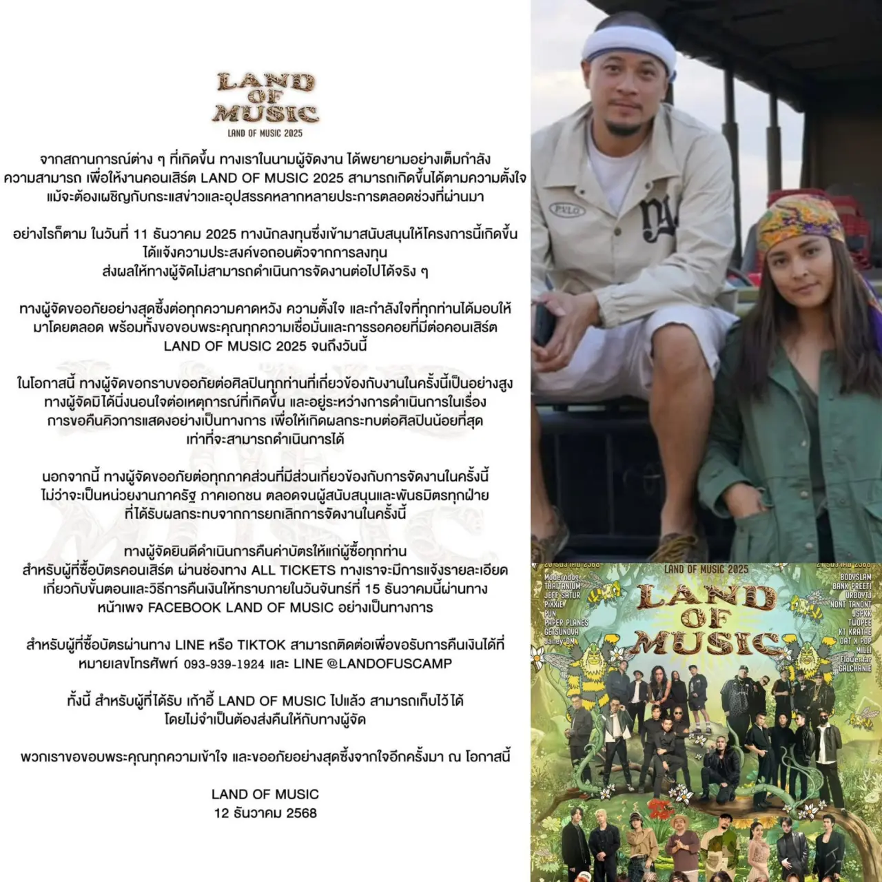 - ทางผู้จัดยินดีดำเนินการคืนค่าบัตรให้แก่ผู้ซื้อทุกท่าน