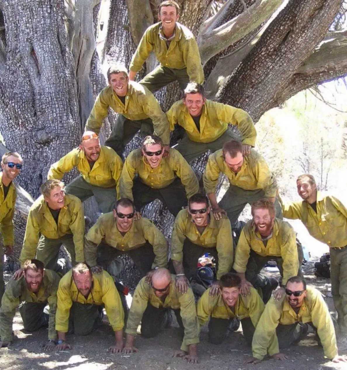 ภาพถ่ายที่หลายคนเคยเห็น คือช่วงเวลาที่ทีม Granite Mountain Hotshots ต่อตัวเป็นรูปปิรามิดหลังควบคุมไฟป่า Doce Fire ในปี 2013 ได้สำเร็จ