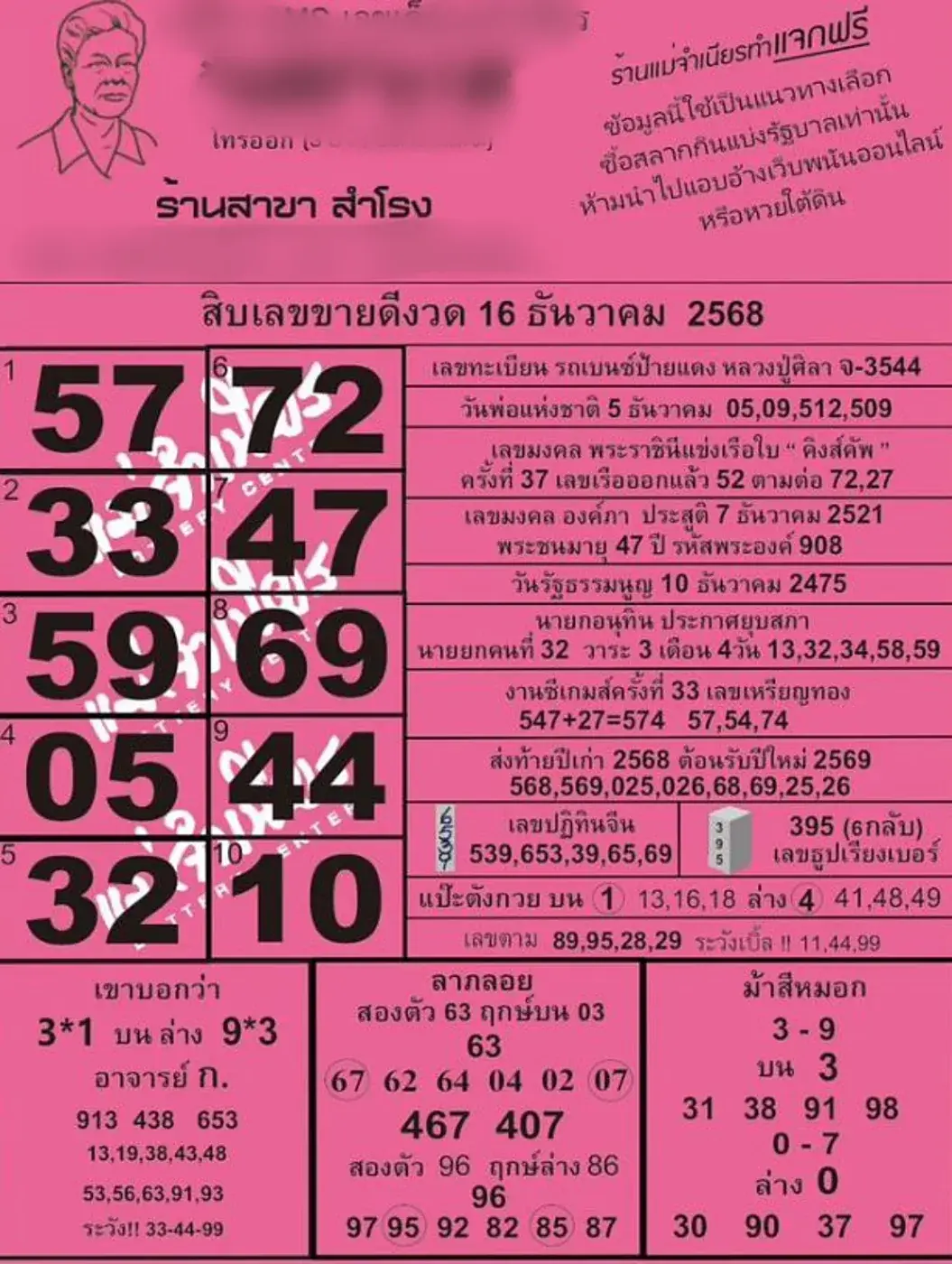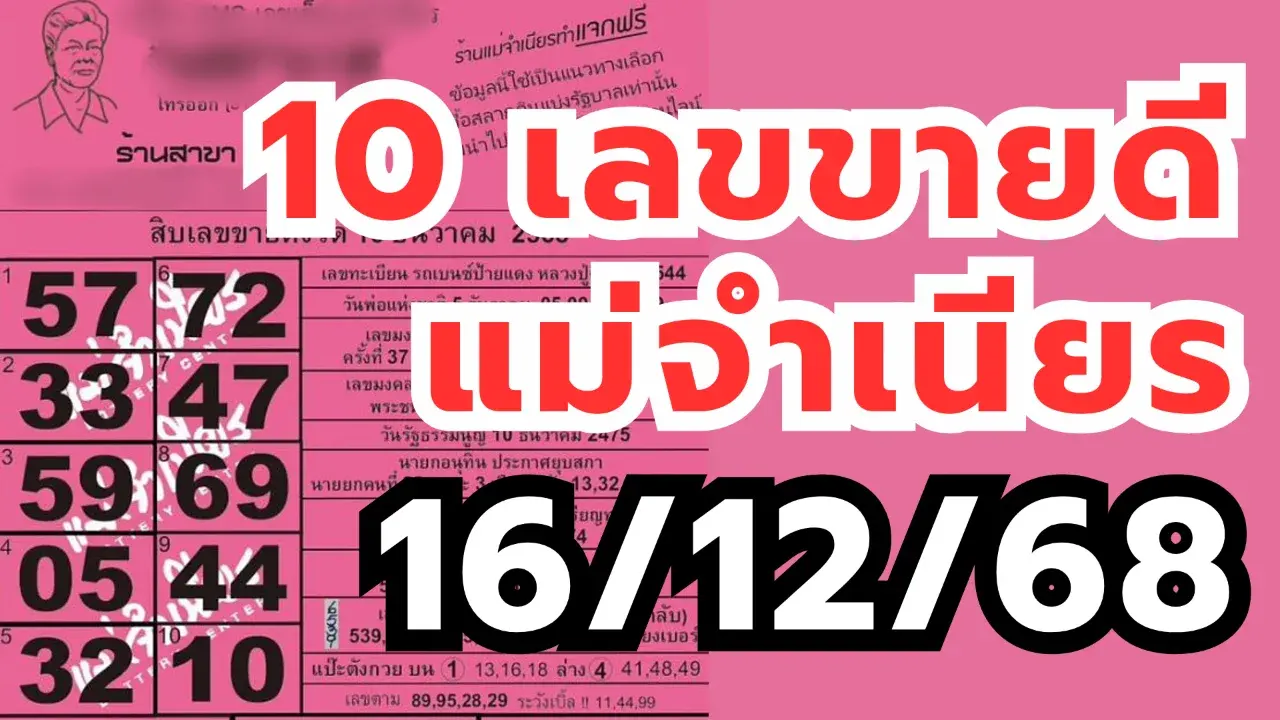 สิบเลขขายดีแม่จำเนียร งวด 16/12/68