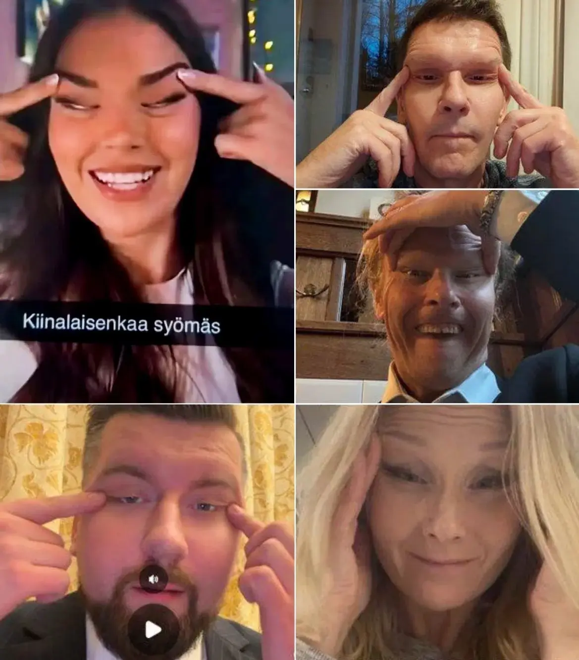 พวกเขาโพสต์ภาพตัวเองทำท่าดึงหางตาแบบเดียวกับซาราห์ เหมือนเป็นการ “ท้าทาย” กระแสสังคม