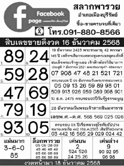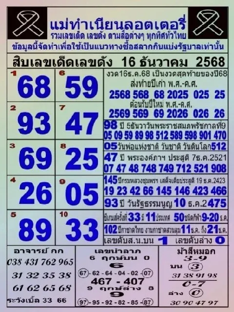 สิบเลขขายดีแม่จำเนียร งวด 16/12/68
