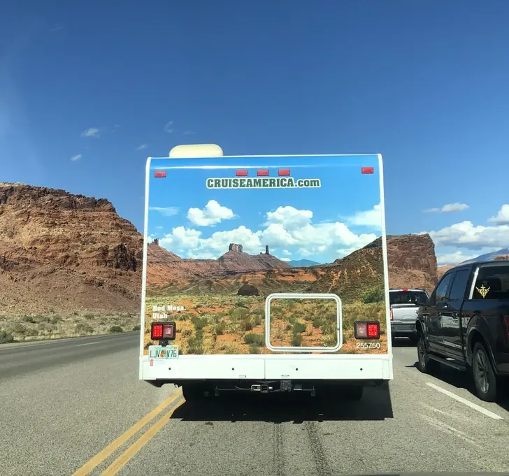 7. ระหว่างที่รถติดฉันหันไปเห็นสิ่งนี้ในกระจกมองข้างทันทีตอนที่มีรถบรรทุกมาจอดด้านหลังรถของฉัน
