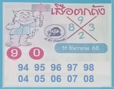 เลขเด็ด "เสือตกถัง (ปกฟ้า)" มาแล้ว! งวดวันที่ 16 ธันวาคม 68..รีบเลยก่อนหวยหมด!!