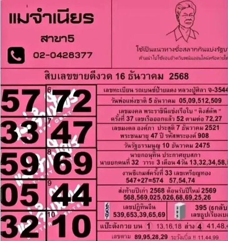บรรยากาสก่อนวันสลากกินแบ่งรัฐบาลไทยจะออกรางวัลในวันพรุ่งนี้ มีความคึกคักเป็นอย่างมาก เนื่องจากเซียนหวย คอหวย คนรักตัวเลขต่างพากันตามหาเลขเด็ดจากสำนักดังๆในโลกออนไลน์ เพื่อนำไปพิจารณาประกอบการซื้อหวยในงวดนี้ ซึ่งล่าสุด นี้ ทางเลขเด็ด ยอดนิยมของคอหวย อย่างแม่จำเนียรได้ออกมาใบ้แนวทางเป็นที่เรียบร้อย แบบนี้ยิ่งทำให้คอหวยยิ่งคึกคักมากขึ้นไปอีกนำเอา 10 เลขยอดนิยมขายดีของแม่จำเนียรไปประกอบการลงทุนในงวดนี้ ซึ่ง 10 เลขยอดนิยมขายดีของแม่จำเนียร งวด 16 ธันวาคม 2568 มีเลขดังต่อไปนี้