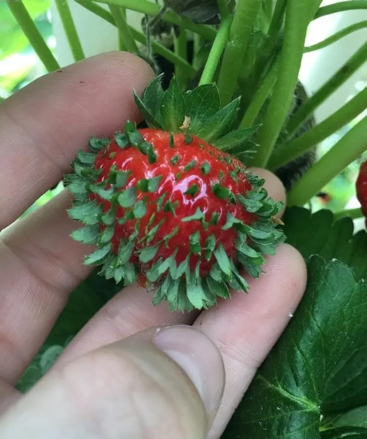 13. เมล็ดสตรอเบอร์รีพวกนี้ที่เริ่มงอกเป็นต้นอ่อน ตอนที่มันยังเป็นผลสุกอยู่บนต้นอยู่เลย