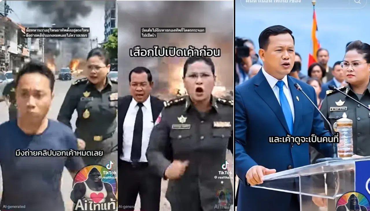 โซเชียลทำถึง! รวมมิตรคลิป A.I. "บอย-มาลี-วุ้นเส้น"..ใครเห็นเป็นฮากระจาย เรียกว่าตอนนี้เรื่องความขัดแย้งตามแนวชายแดนระหว่างไทยกับกัมพูชาก็กำลังเป็นที่สนใจของคนทั่วโลก แม้จะมีเฟคนิวส์จากฝั่งตรงข้ามปล่อยออกมาเรื่อยๆ แต่คนทั่วโลกก็รู้ดีว่าใครเริ่มก่อน และใครกันแน่ที่เป็นฝ่ายรุกราน เรื่องนี้บอกเลยทางฝั่งตรงข้ามไทยเขาเตรียมการมานานแล้ว นี่แหล่ะระบบเผด็จการเขมรแดง บอกกับแรงสนับสนุนจากพรรคคอมมิวนิสต์มหาอำนาจ ไม่เคยกลัวอะไรเพราะมีพี่ใหญ่หนุนหลัง ทั้งคำขู่ฝ่ายไทยและอาวุธสมัยใหม่ให้ลองใช้เพียบ