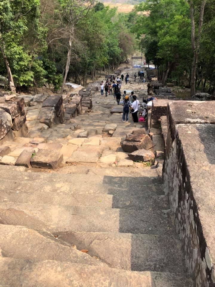 ตรงนี้นั้นเรียกว่าทางของประเทศไทย เพราะว่าเรานั้นเดินลงมาจากปราสาทแล้ว หากเดินขึ้นไปบันไดจนสุดตรงนั้นคือดินแดนปราสาทเขาพระวิหาร เป็นในส่วนของบันไดหิน และต้นไม้นั้นขึ้นมาเป็นจำนวนมากหากว่าต้องการที่จะบูรณะนั้นคือชุดในการที่จะถ่ายกับปราสาท เรานั้นเน้นในส่วนของ
