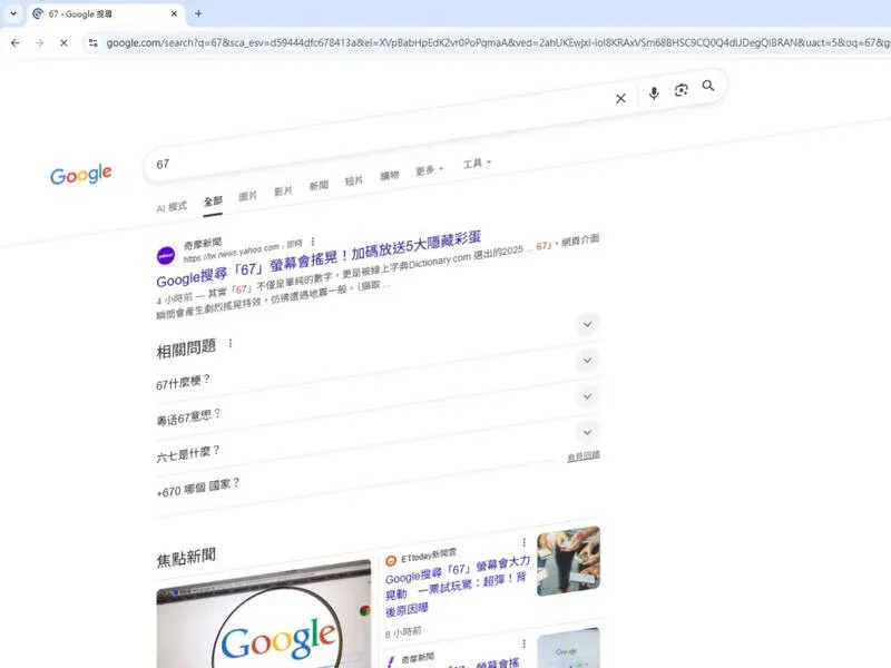 ปรากฏการณ์ "จอเขย่า" จากการค้นหา "67" คือการที่ Google ได้นำมีมยอดฮิตของโลกออนไลน์มาสร้างเป็นฟีเจอร์ลับ (Easter Egg) ที่สร้างความตื่นเต้นให้ผู้ใช้งาน ซึ่ง "6-7" นั้นเป็นคำฮิตที่ถูกยกให้เป็นคำแห่งปี 2025 โดยไม่มีความหมายตายตัว แต่เป็นที่นิยมอย่างแพร่หลาย การค้นพบนี้กระตุ้นให้ผู้ใช้งานจำนวนมากไปค้นหา "ฟีเจอร์ลับ" อื่น ๆ ที่ Google ซ่อนไว้ เช่น อุกกาบาต ฝนดาวตก และคำสั่งสุดคลาสสิกอื่น ๆ