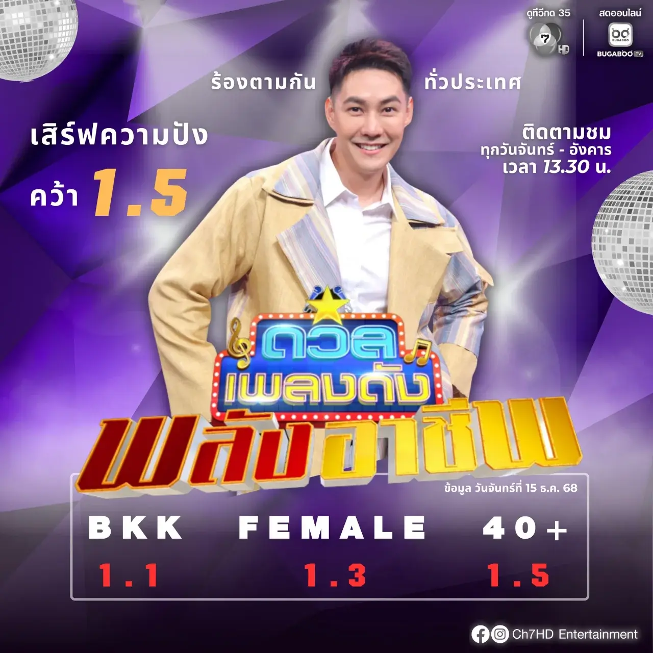 “ดวลเพลงดัง พลังอาชีพ” เสิร์ฟเพลงสุดปัง ร้องตามกันทั่วประเทศ คว้าเรตติง 1.5 !