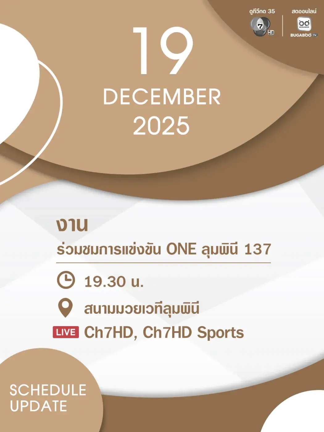 19 ธ.ค.นี้ พบกับนักแสดงช่อง 7HD ที่สนามมวย One ลุมพินี