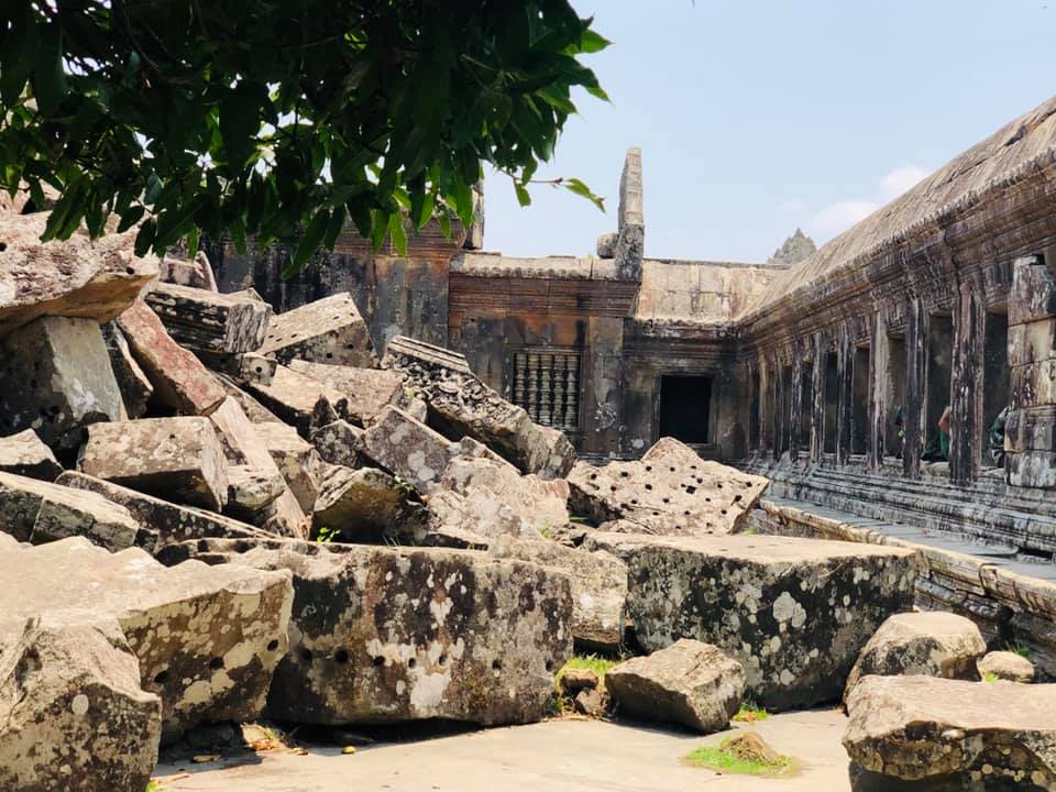 ระยะเวลาที่เรานั้นเดินมาจากตรงนั้น เรามาเห็นในส่วนของก้อนหินที่ตกลงมาจากปราสาทที่เกิดการพังทลายลงมาตามเวลา ทำให้ก้อนหินเหล่านี้นั้นลงมากอง ที่ไม่สามารถที่จะยกขึ้นไปได้เพราะว่าในส่วนของน้ำหนักของหินแต่ละก้อนนั้นมีความหนักและมีขนาดใหญ่มาก ยากที่จะมีการต่อหรือว่าสร้างให้กลับมาเหมือนเดิม