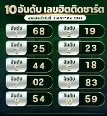 มาแล้ว! "10 อันดับ เลขฮิตติดชาร์ต" งวดวันที่ 2 มกราคม 69..เลขไหนฮิต ส่องเลย!