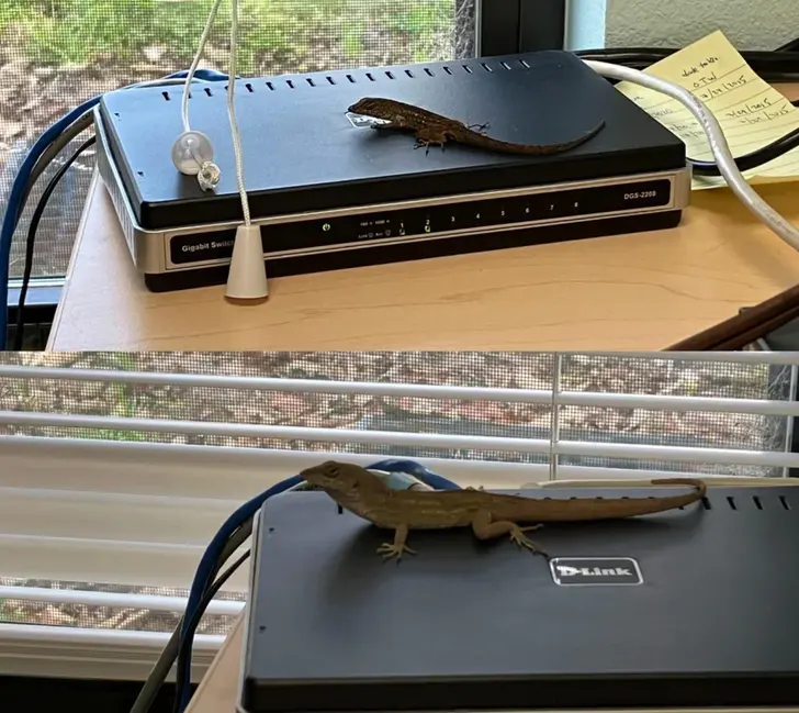 6. เมื่อวันก่อนฉันเข้าไปในห้องทำงานของฉันและก็พบกับกิ้งก่าตัวนี้กำลังนอนอยู่บนกล่องอินเทอร์เน็ตอุ่น ๆ