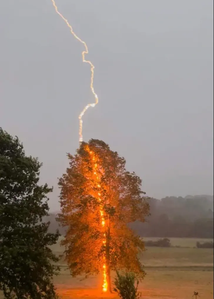 7. ปรากฏการณ์ฟ้าผ่าลงที่ต้นไม้ ที่ฉันบันทึกภาพไว้ได้
