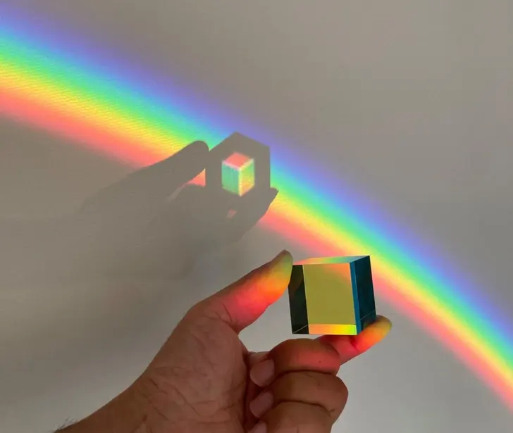 17. ภาพสายรุ้งที่สร้างขึ้นเมื่อถือปริซึมลูกบาศก์เหนือสายรุ้งที่สร้างโดยปริซึมอีกอัน