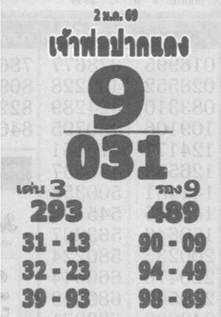 เลขชุด 2 ตัว เลขเด่น : 31 - 13 - 32 - 23 - 39 - 93