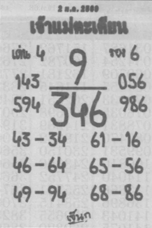 เลขชุด 2 ตัว เลขเด่น : 43 - 34 - 46 - 64 - 49 - 94