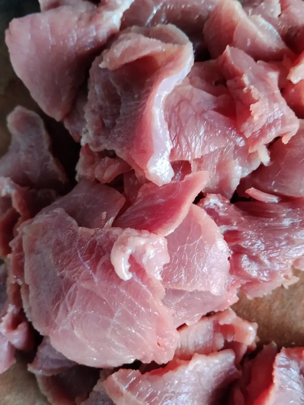 ในส่วนนี้เขานั้นเรียกว่าการซอยแบบจุ๊ใหญ่ในแบบนี้นั้นอร่อยและนิ่มแต่ว่าจะไม่ค่อยอร่อยเหมือนสีเข้ม ที่ทำสดใหม่ หากว่าสีนั้นเหมือนสีของหมูนั้นเราอาจจะเรียกได้เลยว่า เนื้อแบบนี้นั้นมีการทำมายาวนานกว่าปกติ