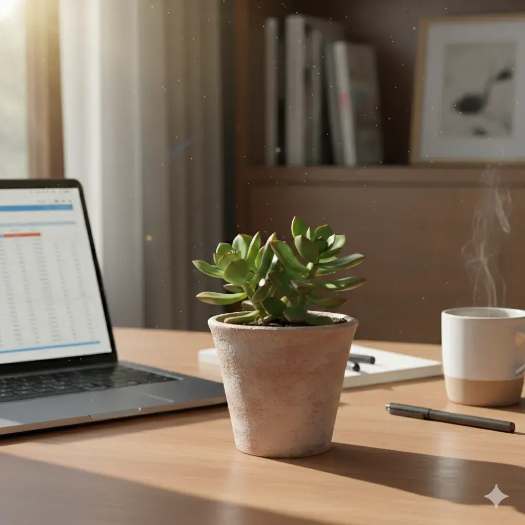 สิ่งที่น่าสนใจคือ ต้นไม้ที่นิยมวางบนโต๊ะทำงาน มักเป็นต้นที่ดูแลง่ายมากๆ แคคตัส ไม้อวบน้ำ เฟิร์นจิ๋ว หรือไทรใบเล็ก ต้นไม้เหล่านี้ไม่เรียกร้องอะไรเยอะ ไม่ต้องรดน้ำทุกวัน ไม่ต้องคอยดูแลเป็นพิเศษ เหมือนกับว่ามันเข้าใจชีวิตคนทำงานดี ว่าเรามีเวลาจำกัด แต่อยากมีอะไรสักอย่างที่ดูมีชีวิตอยู่ใกล้ตัว