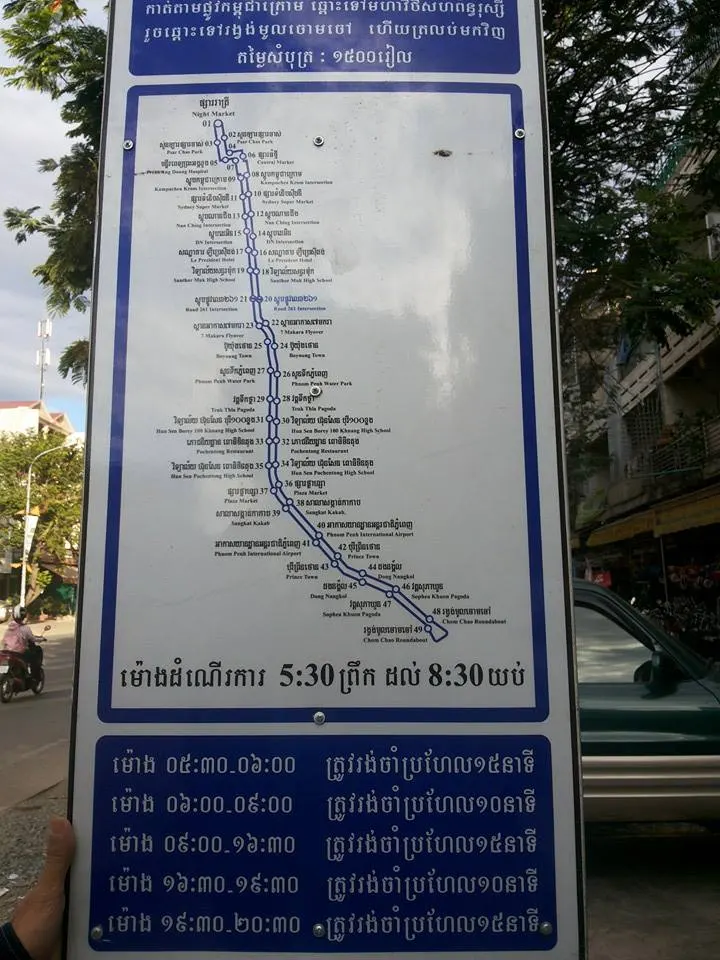 การเดินทางด้วยรถบัทโดยสาร ในพนมเปญประเทศกัมพูชาราคาคนในชาติ