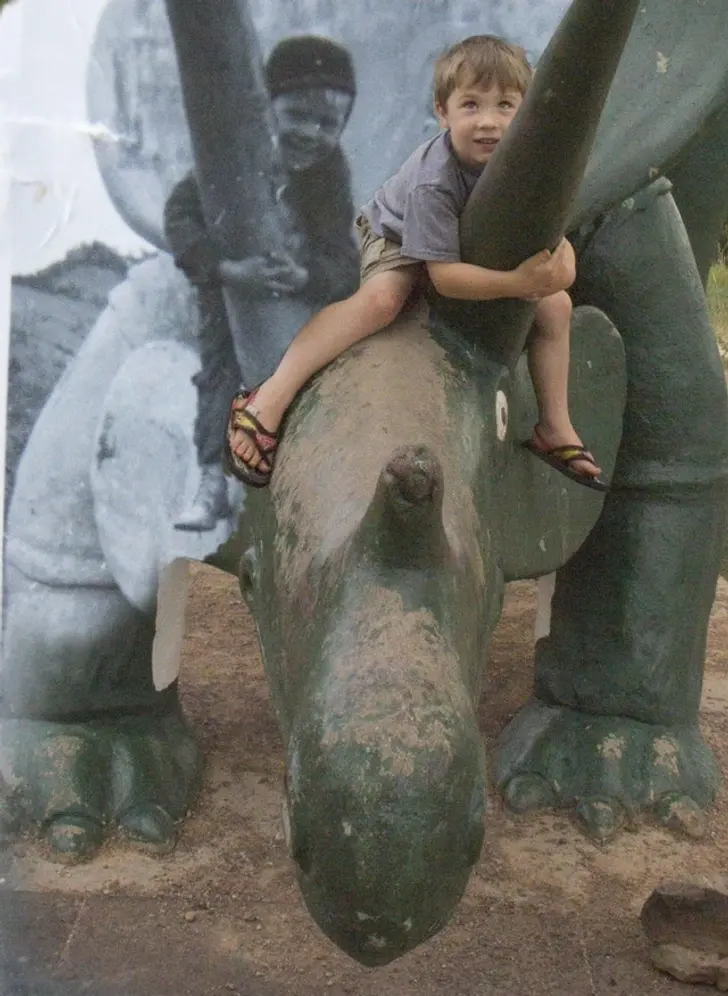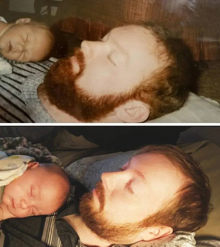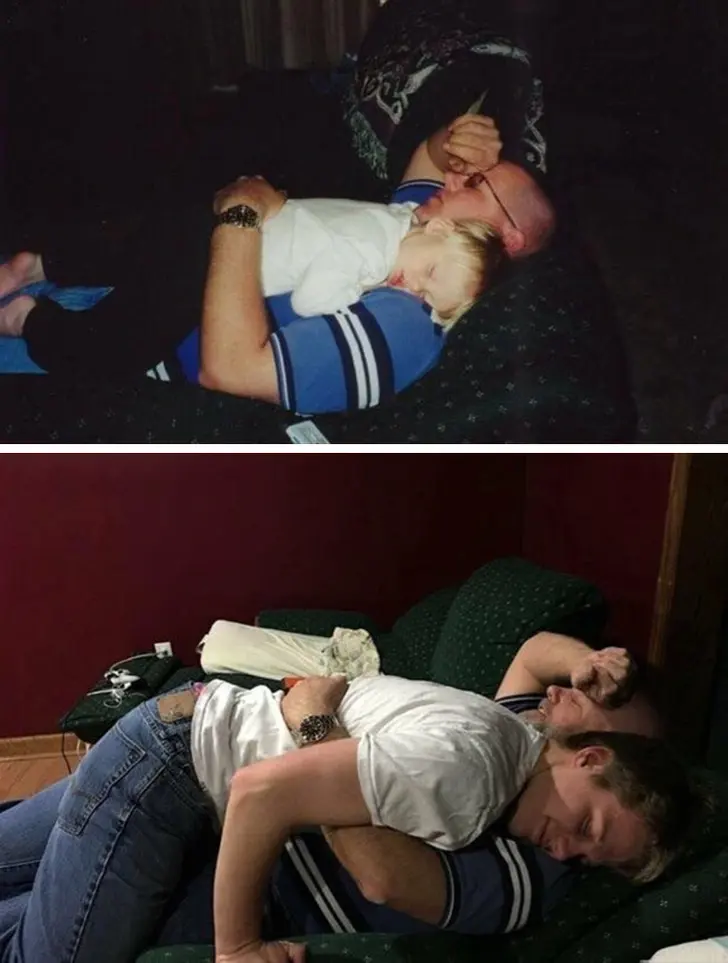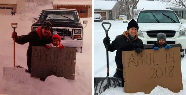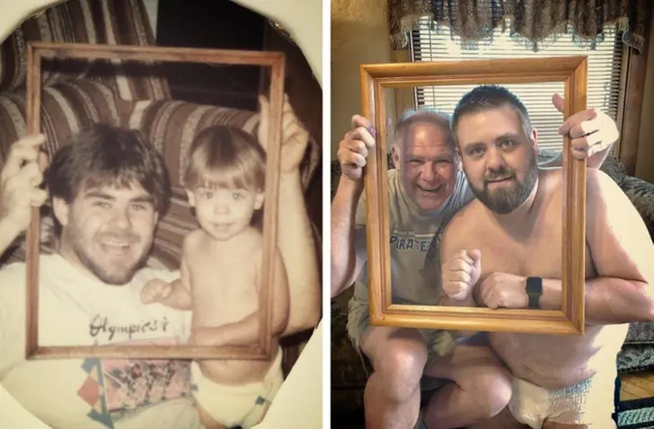8. ลูกของฉันกับปู่ของเขาอยู่ที่เดียวกัน ห่างกัน 69 ปี ในเทคนิคการซ้อนภาพ