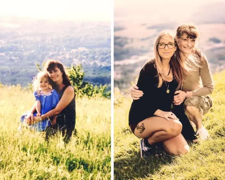 23. พี่สาวของฉันกับฉันเมื่อก่อนและในตอนนี้ รูปถ่ายห่างกัน 20 ปี