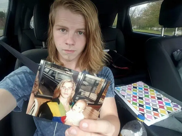 16. ผมตอนอายุ 17 ปี กำลังถือรูปพ่อของผมตอนอายุ 17 ปี ธรรมเนียมการไว้ผมยาวของเรา