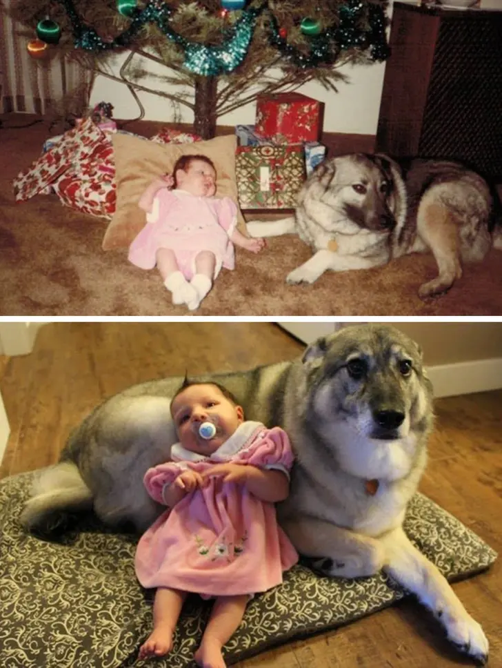 19. ภรรยาของผมกับสุนัขของเธอเมื่อ 30 ปีก่อน และลูกสาวของเรากับสุนัขของเธอ