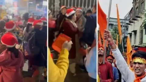การฉลองคริสต์มาสในอินเดียวุ่นวายหนัก หลังมีแก๊งค์มาขับไล่คนสวมหมวกซานต้า