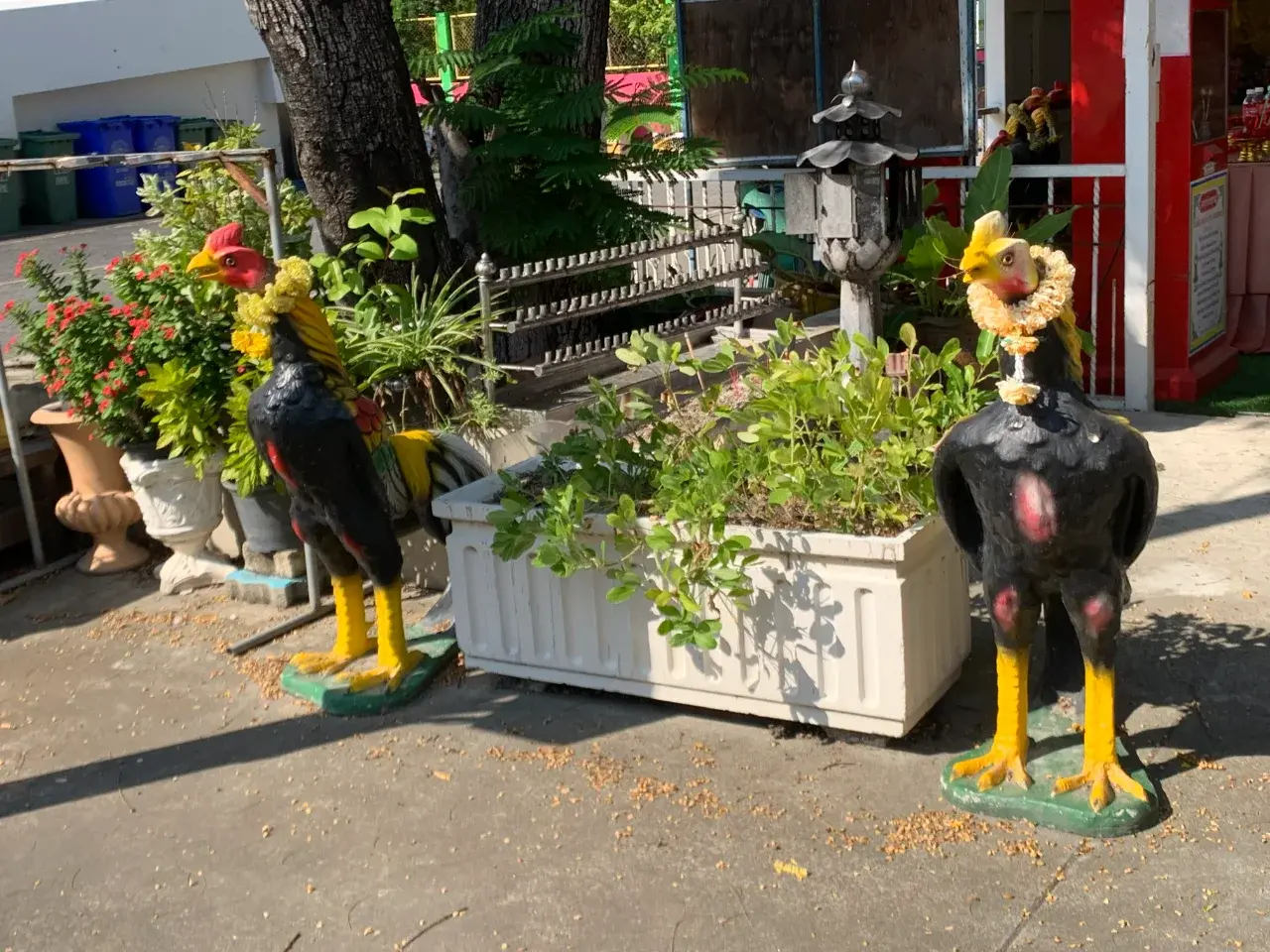 รูปปั้นไก่ ที่อยู่ด้านหน้าศาลไอ้ไข่วัดเจดีย์