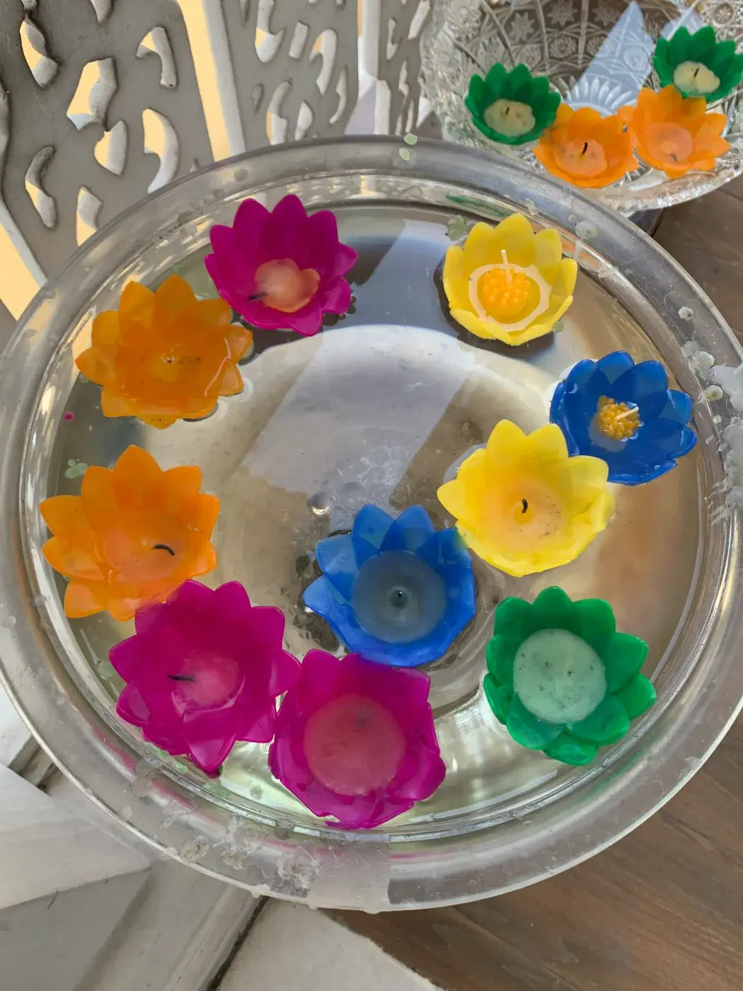 เทียนหลากสีสันรูปดอกบัว