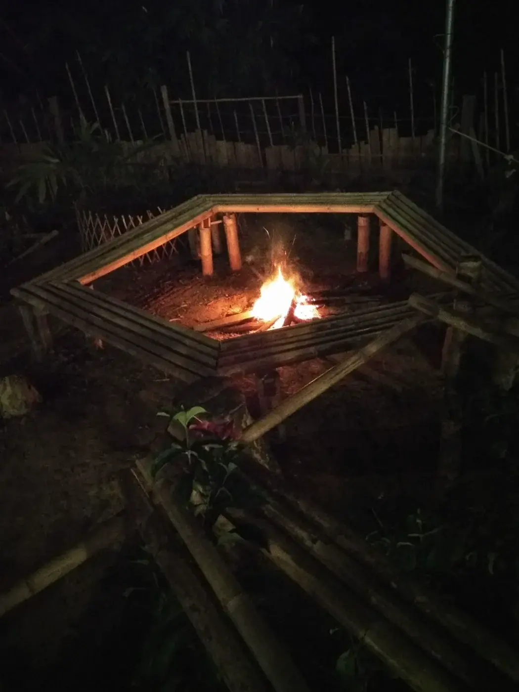 สถานที่ในการทานอาหารในตอนเย็นนั้นถูกจุดขึ้นด้วยไฟ เพราะว่าแม่บ้านนั้นถามเราว่าต้องการที่จะผิงไฟด้วยไหมเพราะว่าที่นี่นั้นหนาวจะต้องคลายหนาวด้วยการนั่งผิงไฟ นี่เป็นเหมือนว่าเรานั้นเป็นคนเมืองที่มาอยู่ในทุ่งนากลางป่า เปลี่ยนบรรยากาศมาก