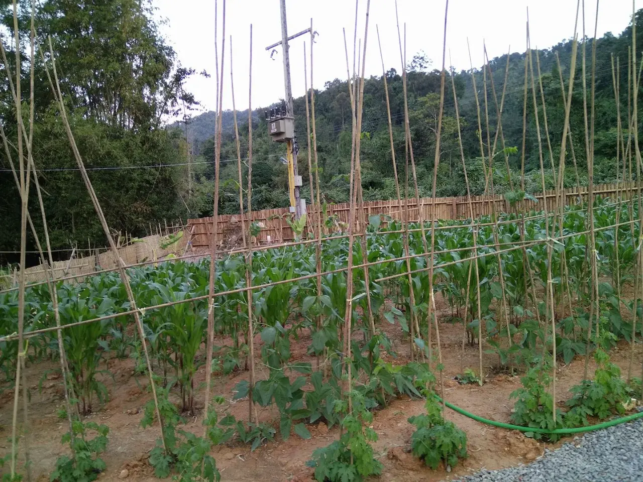 ตอนที่เรานั้นมองเหมือนว่าต้นไม้นั้นจะยังไม่ได้มีการรดน้ำ แต่ที่นี่นั้นรถดน้ำด้วยสายยาง แต่ว่าน้ำนั้นอาจจะสวยหรือว่าไม่สะอาดเท่าที่ควร ข้าวโพดนั้นเริ่มที่จะมีในส่วนของฝักแล้ว หอมมากเจ้าของที่ปลูก คนสวนที่นี่นั้นอาจจะบอกหรือคิดในใจว่าทำไมครูนั้นถึงถามเรานั้นได้มากขนาดนี้ ทำให้ทิ้งงานนั้นไว้ตรงนี้แล้วไปที่บ้าน