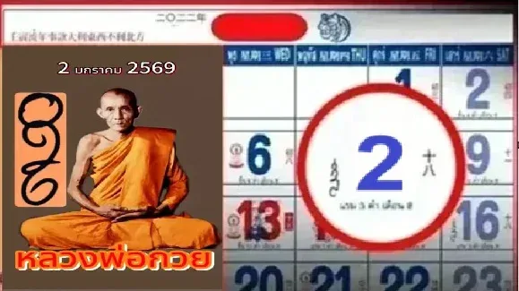 เลขเด็ดปฏิทิน "หลวงพ่อกวย" งวดวันที่ 2 มกราคม 69..เลขเด่นมาแรง ส่องด่วนเลย!