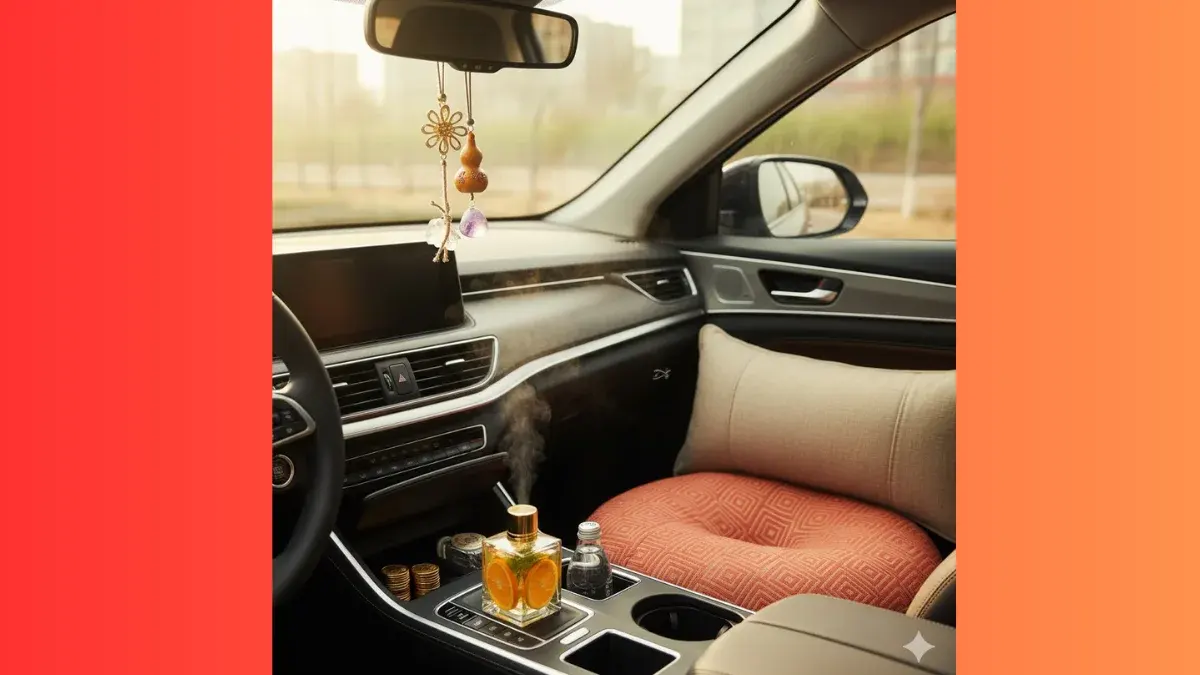 น้ำหอมหรือถุงหอมกลิ่นส้มและมะลิ การสร้างบรรยากาศในรถด้วยกลิ่นบำบัดช่วยลดความเครียดสะสมจากปัญหารถติด โดยกลิ่นส้มจะช่วยให้รู้สึกตื่นตัว กระฉับกระเฉง ส่วนกลิ่นมะลิช่วยให้จิตใจสงบและลดความใจร้อนในการขับขี่ ในด้านฮวงจุ้ย "ส้ม" สื่อถึงทองและความสุข การใช้กลิ่นส้มจึงเปรียบเสมือนการดึงดูดความมั่งคั่งและพลังบวกเข้ามาในรถตลอดเวลา