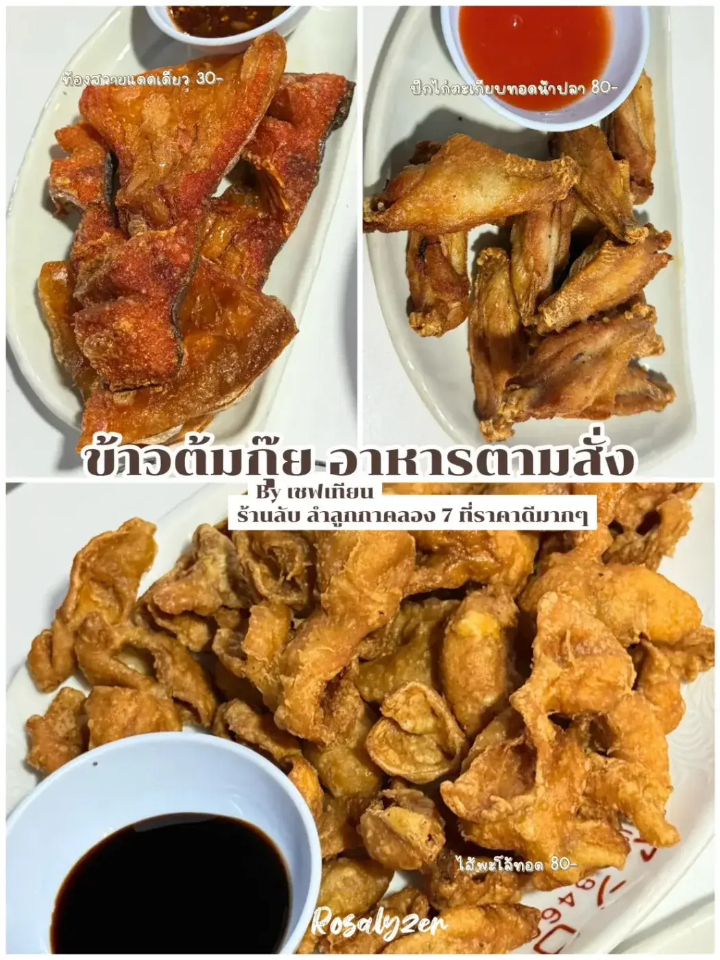 - ปีกไก่ตะเกียบทอดน้ำปลา 80 บาท อันนี้อร่อย