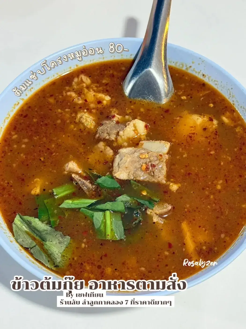 - ต้มแซ่บโครงหมู 80 บาท อันนี้แซ่บ อร่อย รสชาติคล้ายต้มยำแซ่บๆ