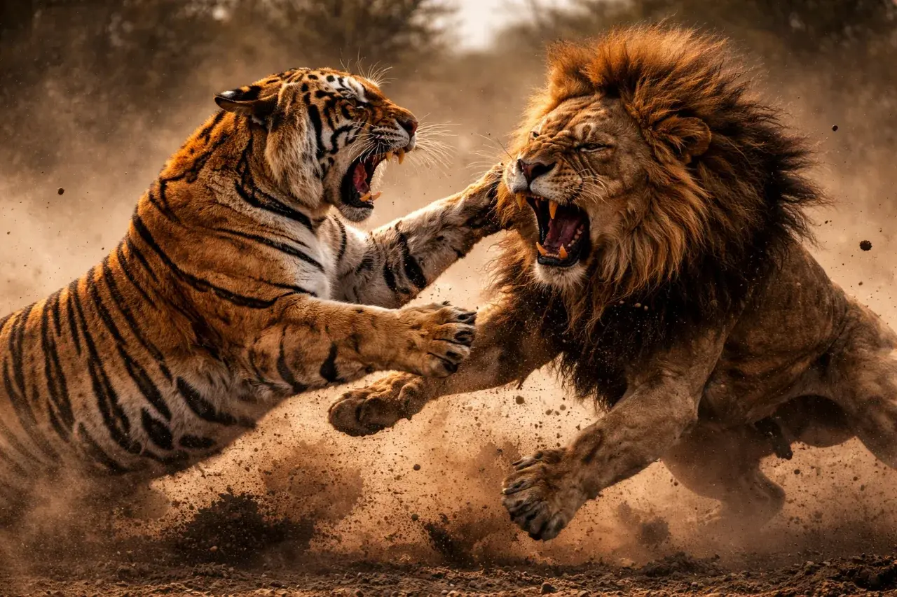 ในอดีตเคยมีบันทึกการเผชิญหน้าระหว่างเสือกับสิงโตในสถานที่ปิด ซึ่งแม้จะไม่ใช่ธรรมชาติแท้ๆ แต่ผลลัพธ์หลายครั้งก็ออกมาในแนวเดียวกัน คือเสือโคร่งมักเป็นฝ่ายได้เปรียบ อย่างไรก็ตาม ต้องบอกกันตรงๆ ว่าเหตุการณ์เหล่านี้คือฉากที่มนุษย์จัด ไม่ใช่สนามจริงของธรรมชาติ และไม่ควรถูกยกมาเป็นข้อสรุปแบบฟันธง