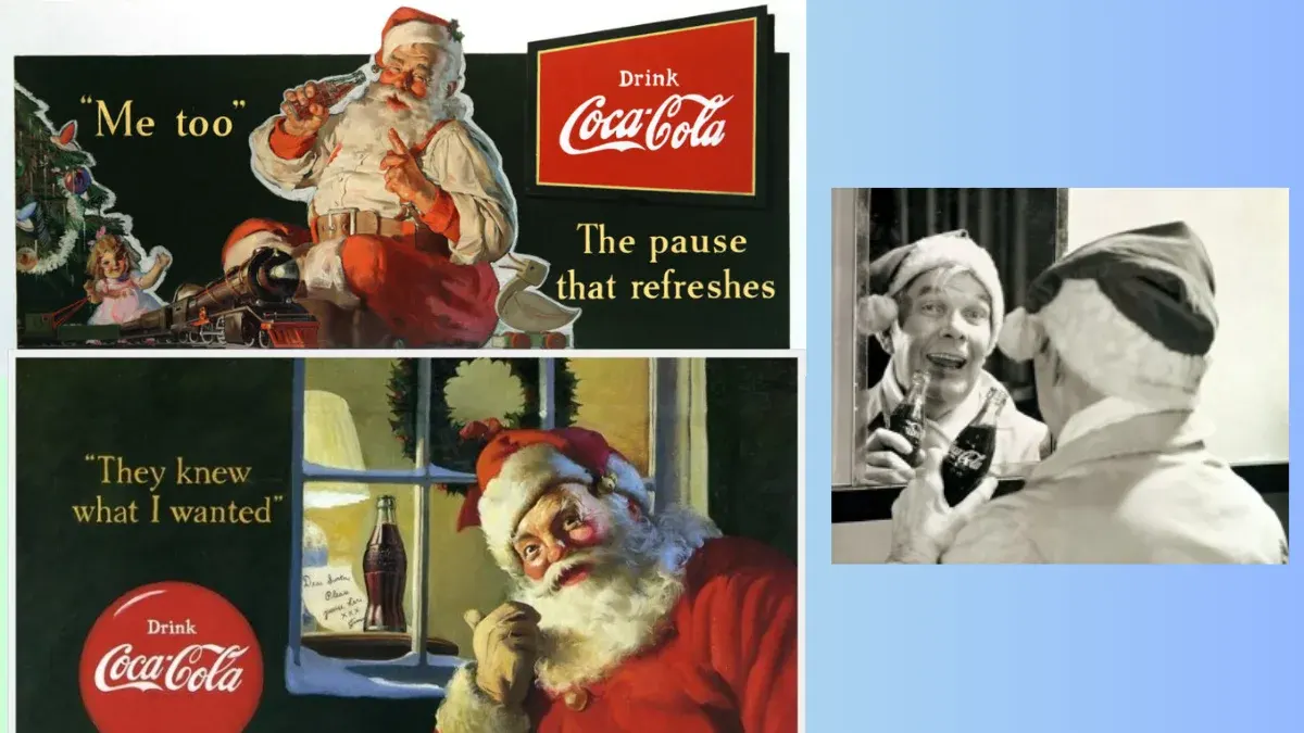 จุดเปลี่ยนสำคัญที่สร้างคาแรคเตอร์ซานตาคลอสแก้มชมพูพุงพลุ้ยในชุดสีแดงขาว คือแคมเปญโฆษณาของ "โคคา-โคล่า" (Coca-Cola) ในช่วงปี 1920-1930 โดยบริษัทต้องการสร้างภาพลักษณ์ซานต้าที่ดูใจดีและอบอุ่นเพื่อเข้าถึงกลุ่มครอบครัว จึงได้ออกแบบให้ซานต้าสวมชุดสีแดงและขาวซึ่งเป็นสีประจำแบรนด์ ภาพโฆษณานี้ถูกเผยแพร่อย่างต่อเนื่องยาวนานจนกลายเป็นภาพจำหลักที่คนทั่วโลกยอมรับ และกลายเป็นมาตรฐานของซานตาคลอสยุคใหม่มาจนถึงปัจจุบัน