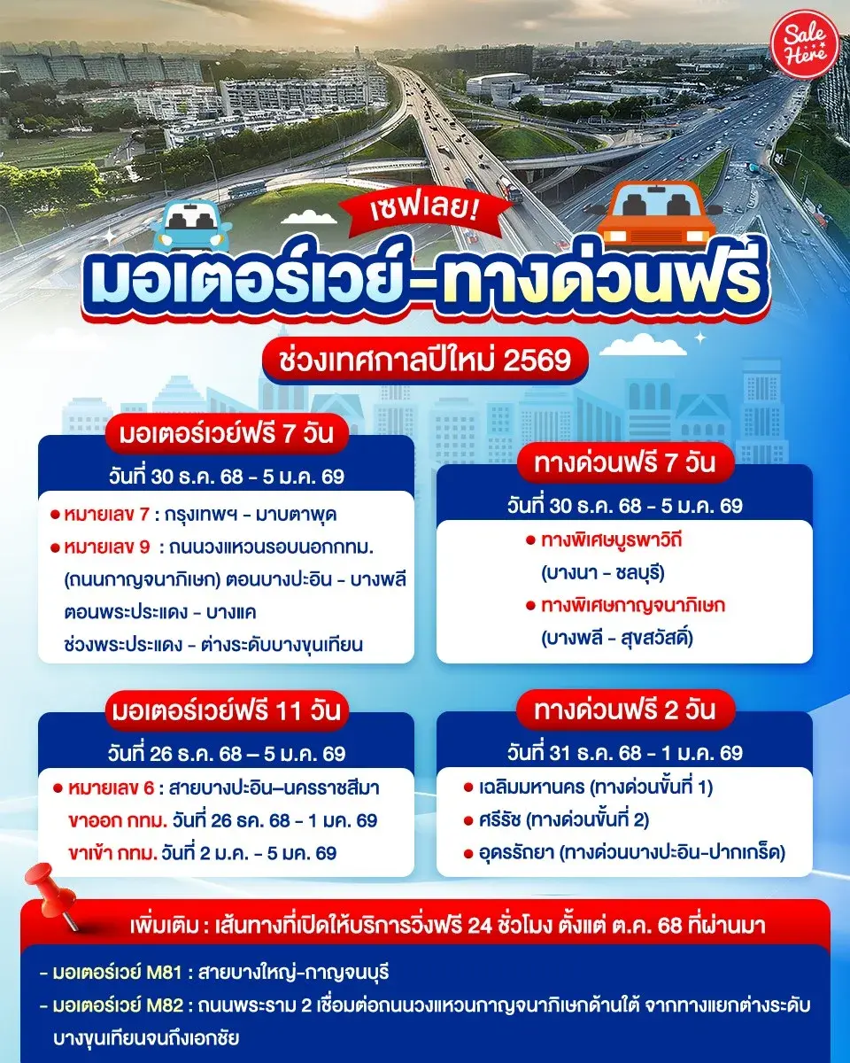 ในช่วงเทศกาลปีใหม่ 2569 นี้ วิ่งฟรียาวๆ ไปเลยในหลายเส้นทาง มากสุดถึง 11 วัน!