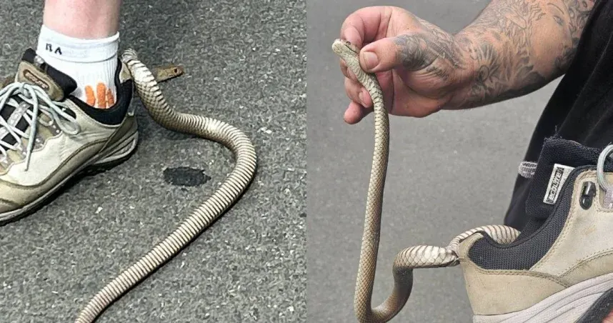 คอรี เคเรวาโร ผู้เชี่ยวชาญด้านการจับงู กล่าวว่า นี่เป็น "สัญญาณขอความช่วยเหลือที่แปลกประหลาดที่สุด" เท่าที่เขาเคยได้รับในอาชีพการงาน หญิงคนนั้นคิดว่าตัวเองแค่มีใบไม้ติดอยู่ "แต่เมื่อเธอรู้ว่าเป็นงู เธอก็กลัวจนขยับตัวไม่ได้ งูพยายามหนี แต่กลับเลื้อยเข้าไปในห่วงด้านหลังรองเท้าของเธอและติดอยู่ จากนั้นมันก็พันรอบข้อเท้าของเธอหลายรอบ"