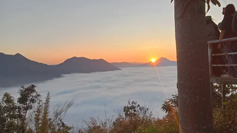 แสงอาทิตย์ขึ้นยามเช้า คลุกเคล้ากับสายหมอก บนภูทอก (เชียงคาน)