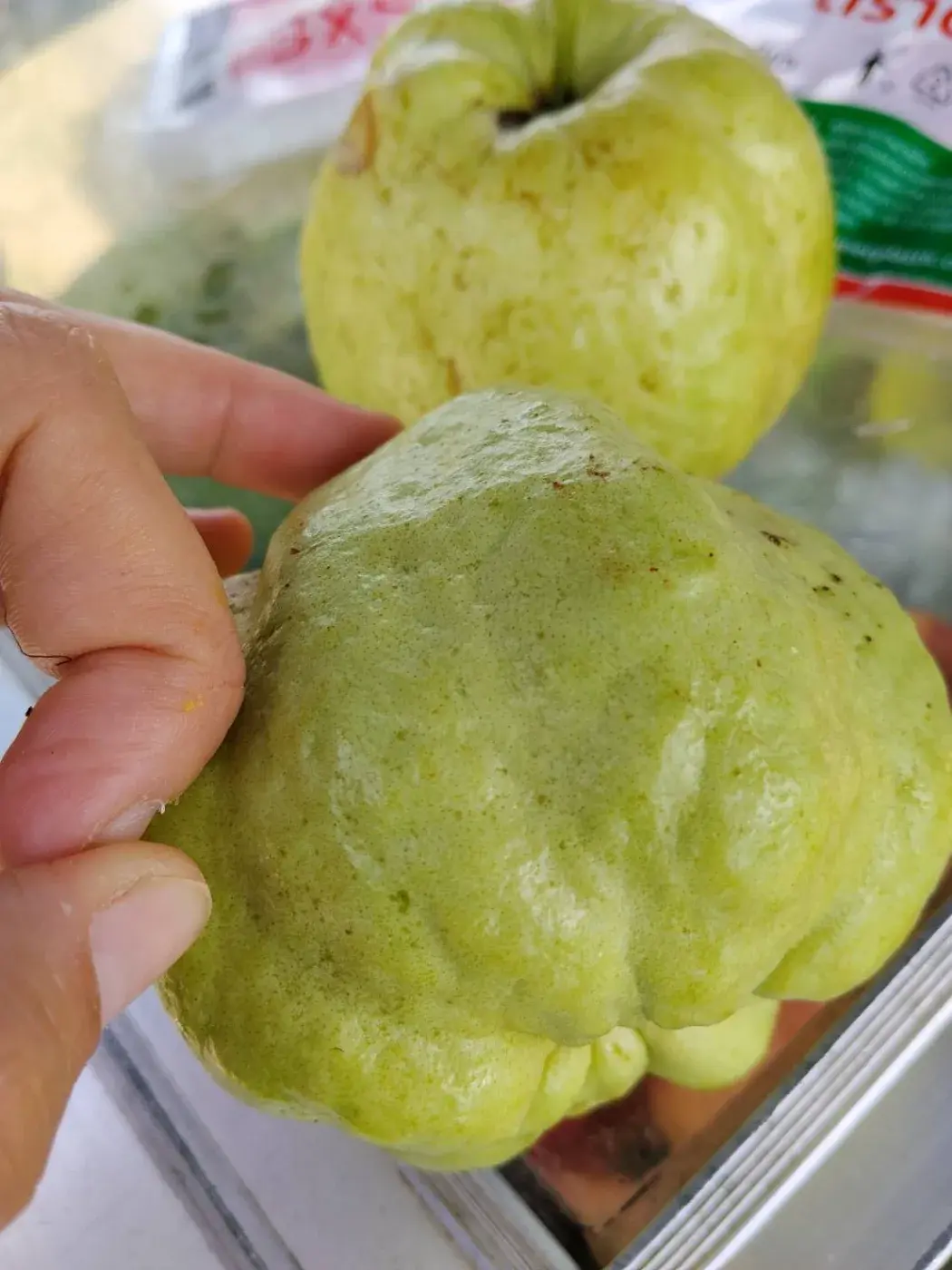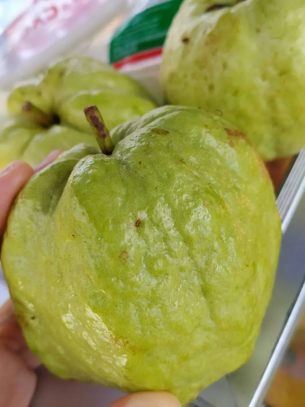 การจับผลไม้ฝรั่งนั้นขึ้นมา ผิวของมันนั้นจะเนียนใส มีในส่วนของแผลบ้าง แผลนั้นมีในส่วนของลักษณะที่สวยกระกรอบใส เนื้อที่ใสนั้นจะยิ่งทำให้อาหารนั้นอร่อยได้ในส่วนของความอร่อย