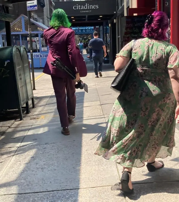 1. ฉันพยายามที่จะถ่ายรูปผู้ชายในชุดนั้น แล้วผู้หญิงที่มีสีผมและสีชุดที่สลับกันกับเขาก็เดินตัดเข้ามาในเฟรม