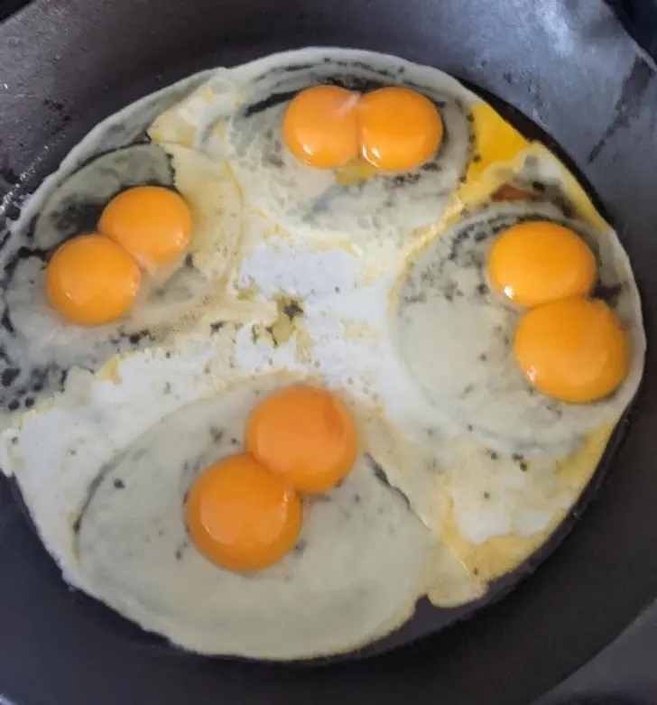 13. ในขณะที่ฉันกำลังทำอาหารเช้า ฉันเจอไข่แฝดติดกัน 4 ฟองรวด !