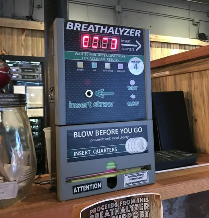 11. ร้านอาหารแห่งนี้มีเครื่องวิเคราะห์ลมหายใจของเราอยู่บนเคาน์เตอร์ที่คุณจ่ายเงิน
