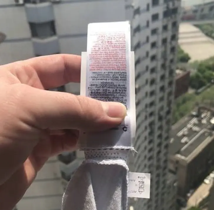 12. ป้ายจากแบรนด์เสื้อผ้านี้ที่ติดอยู่กับชิ้นส่วนของผ้า คุณตัดมันออกได้และไม่ทำให้คุณรู้สึกคัน