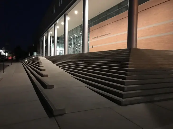 17. ทางลาดสำหรับผู้พิการนี้ถูกสร้างไว้ในระหว่างขั้นบันไดอีกที