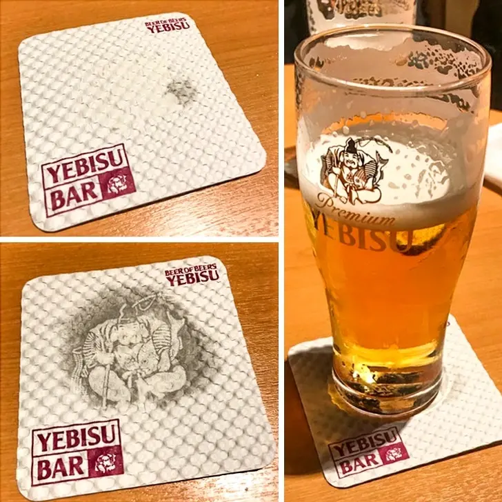 18. ที่รองแก้วเบียร์นี้จะเผยให้เห็นภาพโลโก้ของร้านที่ซ่อนอยู่เมื่อน้ำซึมเข้าไปจนเพียงพอ